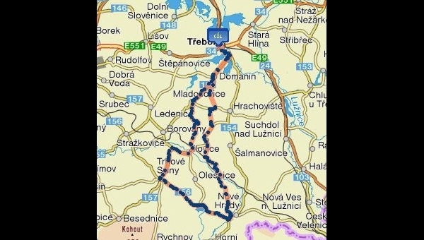- Cyklotrasa č.8 na Červenou Lhotu 102 km