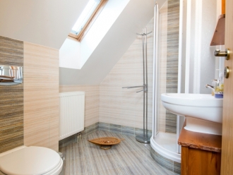 1 x třílůžkový apartmán s vlastní koupelnou, WC a kuchyňkou pro přípravu studené kuchyně. Součástí vybavení je mikrovlná trouba, lednice, varná konvice.