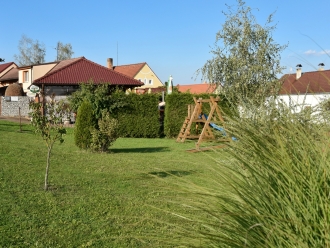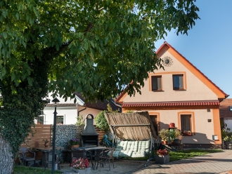 Najdete u nás zahradu s posezením, se zahradním krbem, na kterém si můžete grilovat a péct dobroty, na zahradě najdou zázemí i děti.